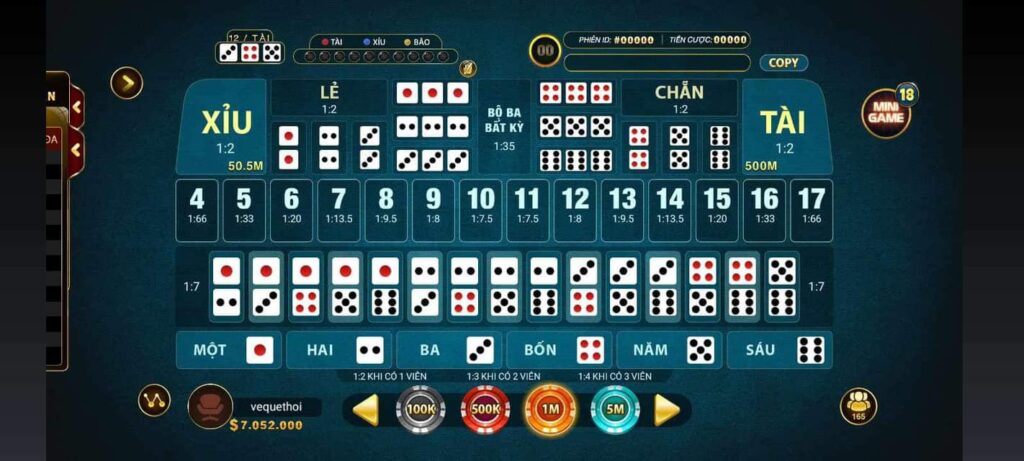 - Cược Tài: Người chơi dự đoán tổng điểm nằm trong khoảng từ 11 đến 17.